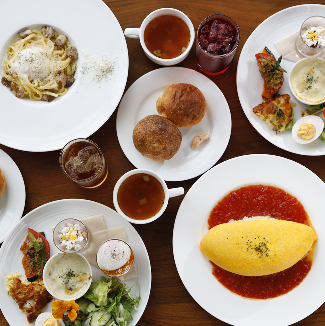 人気の天美卵オムライスやパンケーキをはじめ、鳥取の食材を使用した肉・魚料理をメインに、