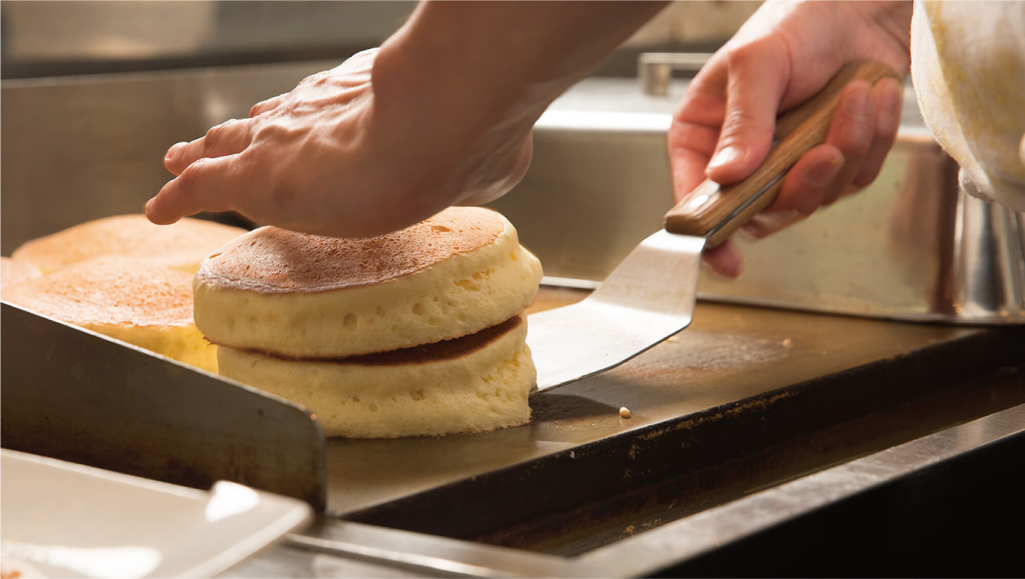 私たちの代表商品ともいえる「パンケーキ」は、天美卵だからこそ作ることができました。