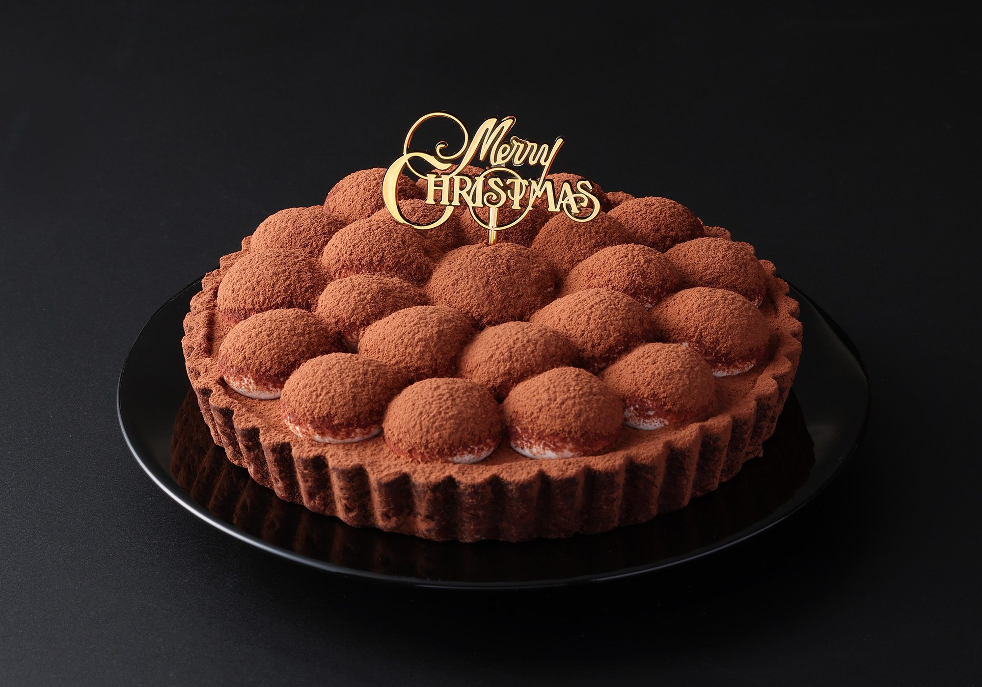 ココアのシュクレ生地に、グリオットチェリーのコンポートをしのばせたアーモンド香るダマンド、天美卵を使用したアングレーズとチョコを合わせた濃厚なクリームを重ね、キルシュ入りのシャンティーとココアパウダーで仕上げました。