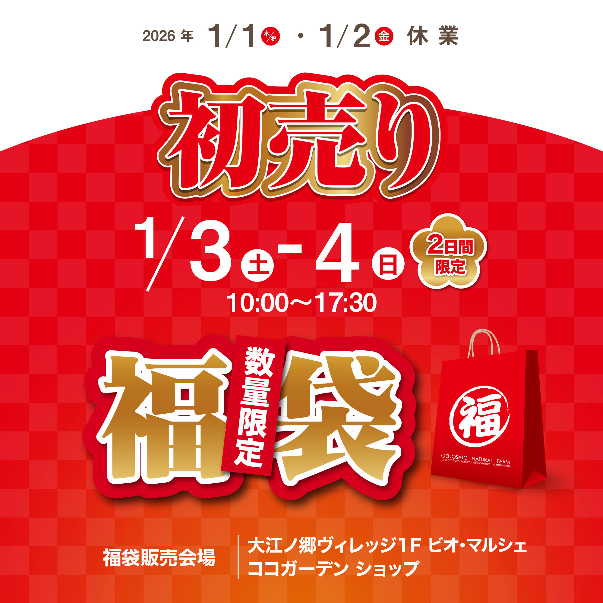 大江ノ郷ヴィレッジ、ココガーデンの初売りは1/3(土)10:00より。