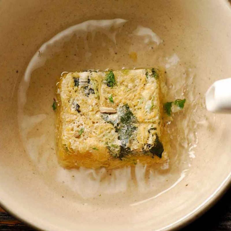 鰹とほたての風味が上品な和風スープ ふんわり卵のやわらかな食感に、白ねぎのシャキシャキ感。 そして素材の美味しさを引き出す鰹出汁の上品な旨味。すべてが絶妙に溶け合った自慢のたまごスープです。 お湯を注ぐだけで出来上がり。手作りしたようなおいしさをいつでもどこでも楽しめます。