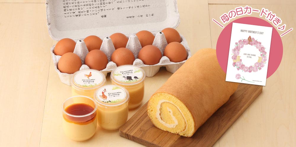 賞味期限 天美卵/生食14日間・加熱調理30日間、大江ノ郷ぷりん/6日間、大江ノ郷バターロールケーキ/6日間