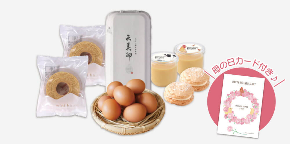 春限定のダッグワーズに、定番人気スイーツと天美卵をセットにしてお届けします。