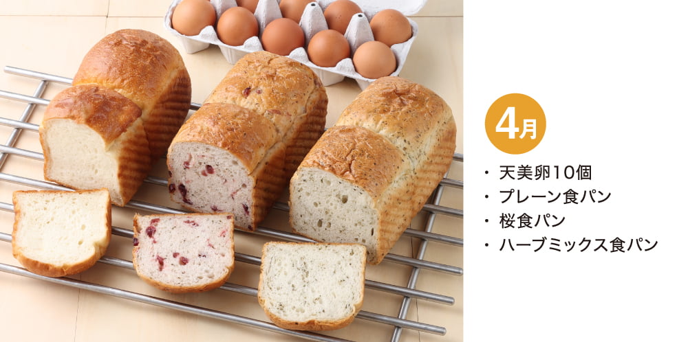 賞味期限 天美卵/生食14日間・加熱調理30日間、食パン/4日間