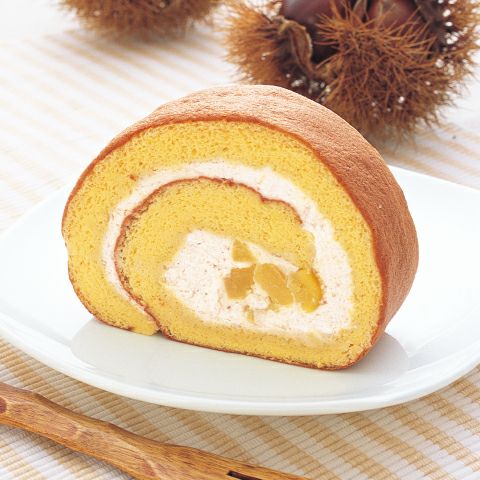 和栗ロール 生クリーム(鳥取県製造)、卵白、砂糖、栗甘露煮、卵黄、小麦粉、栗ペースト、蜂蜜、ラム酒、(一部に小麦・卵・乳成分を含む)