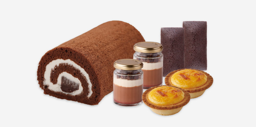 ショコラロールに3種類のスイーツを少しずつ詰め合わせ。