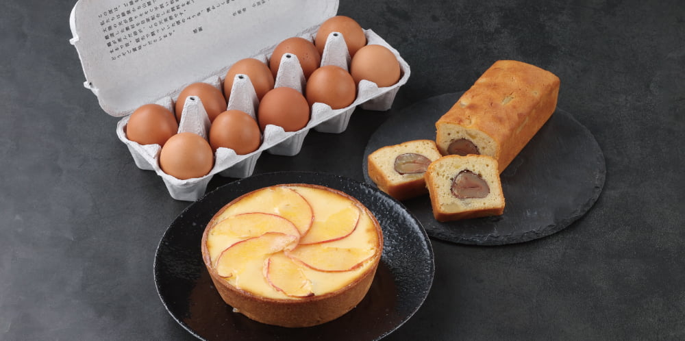 毎年人気の鳥取りんごのチーズタルトと、和栗をふんだんに使用した極みパウンドを天美卵と一緒にお届け。ふたつの季節限定をご一緒にお楽しみください。