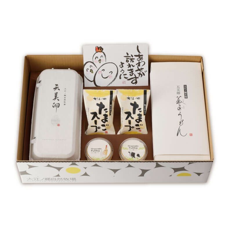 お歳暮と自宅用にも取り寄せました。箱を開くと思わず笑顔が。産みたて卵にかわいいプリン、薬味まで付いた打ちたてうどんまで!卵は黄身の味わいが濃くて美味しい!毎朝卵かけご飯にしています。お歳暮も大変喜んでくれて良かったです。
