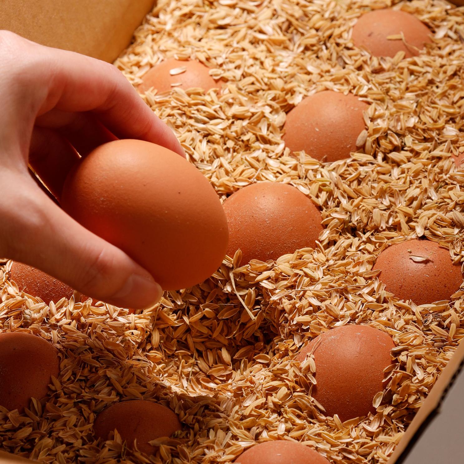 平飼い鶏の朝採れ高級卵「天美卵もみがら詰め」 高級感のあるパッケージで、創業当初よりご進物用に大人気の逸品。 天美卵もみがら詰め30個