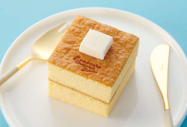 しっとりふわふわ生地に、とろ~りバターがとろけるパンケーキのケーキ。