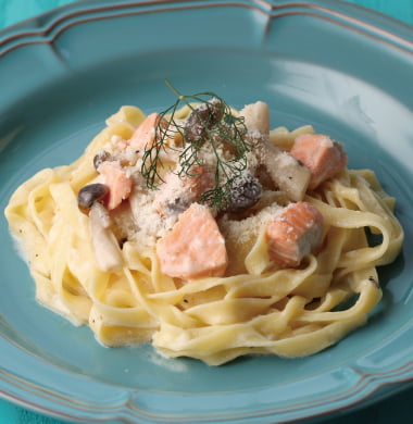 ゴロッと入った境港サーモンと、コクのある濃厚なクリームがとけ合う絶品パスタ。