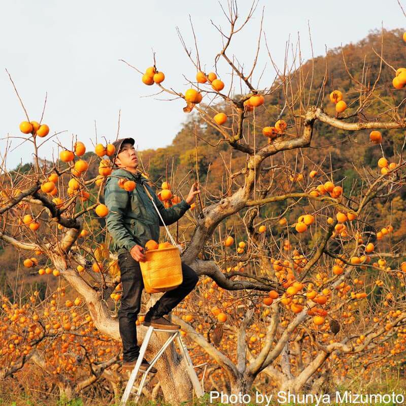 農園には、100年以上になる花御所柿の古木があります。おじいさんの代から受け継ぎ、手入れの行き届いた木には今も美味しい柿が実ります。ひとつひとつ、木の上で熟した柿を見極めて、私たちが大切に育てた柿をお届けします。