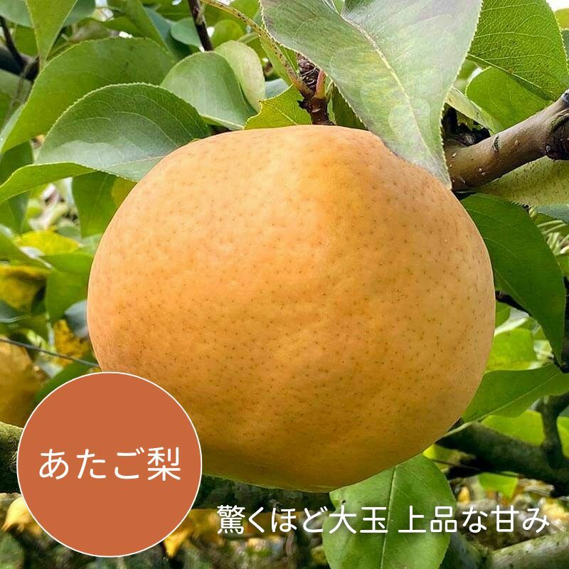 冬梨の代表格、驚くほどに大玉に実るあたご梨。果肉はシャキシャキとした食感で、果汁たっぷり。その姿からは想像できないほど繊細な味です。