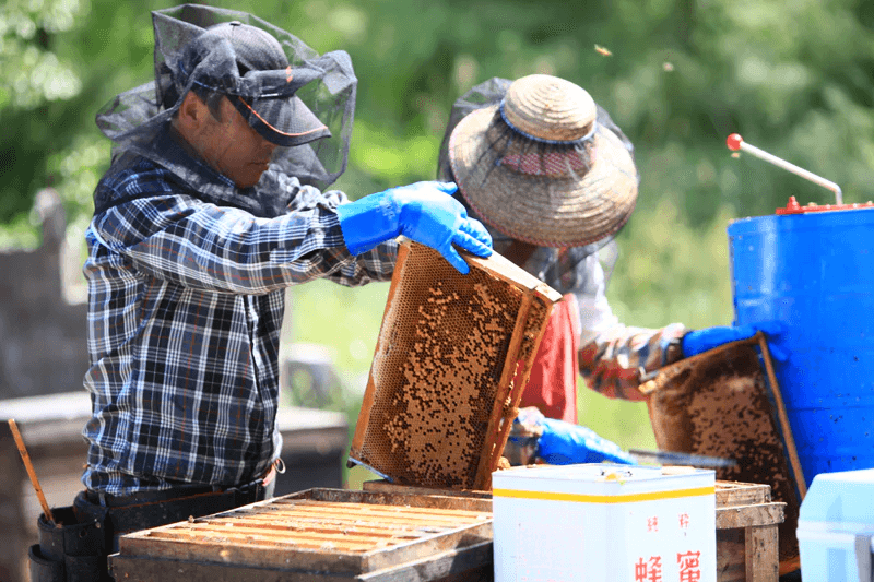 その時々でグラノーラの味作りに適した国産の純粋蜂蜜をたっぷりと使用し(現在は鳥取県の八頭で春に採れた百花蜜を使用)、奄美諸島産の素焚糖を合わせることでコクを補っています。