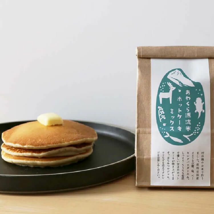 西粟倉村は、標高が高く、日中があたたかくても夜の気温はぐっと下がります。この寒暖差がお米の甘味を作り出します。 そんな「あわくら源流米」を100%を使用したホットケーキミックスは、お米本来の甘味と素朴な味わいをお楽しみいただけます。 からだにやさしい素材のみをつかっています。 西粟倉村産のあきたこまち、国産のさとうきび糖・岡山県産の塩・アルミニウムフリーのベーキングパウダーのみで作ったホットケーキミックス。 グルテンフリーで優しい甘さなので、小さなお子様から健康志向の方も安心してお召し上がりいただけます。