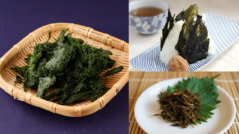 地元の名産品!丁寧に収穫し、痛んだ部分を取り除き、乾燥させた天然わかめ。さっと炙ってご飯にかけたり、おむすびに。