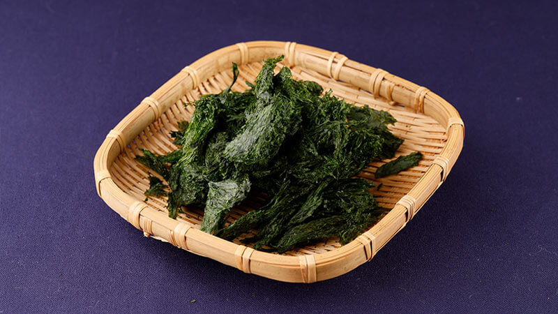 香り豊かに大切に育てた新商品・すじあおのり。お料理の仕上げに磯の香りをプラスしてくれます。お味噌汁や天ぷら、そのままおつまみとしてお召し上がりいただくのもおすすめ。