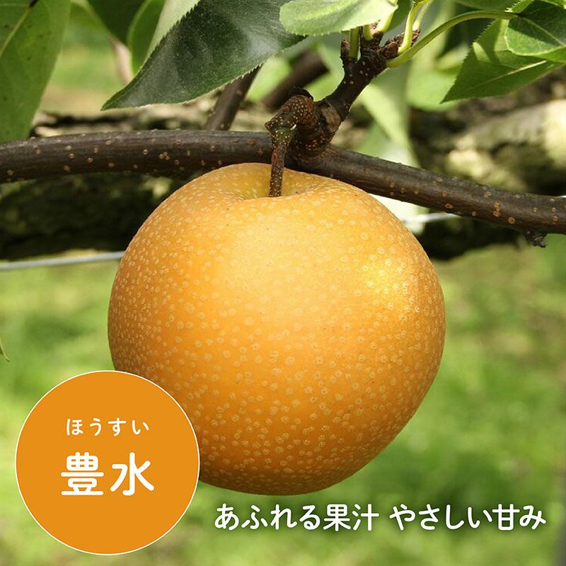 豊水は甘味が強くてやさしい酸味の赤梨です。果肉は果汁をたっぷり含んでいてジューシー。梨特有のシャリシャリとした食感と甘さが楽しめます。