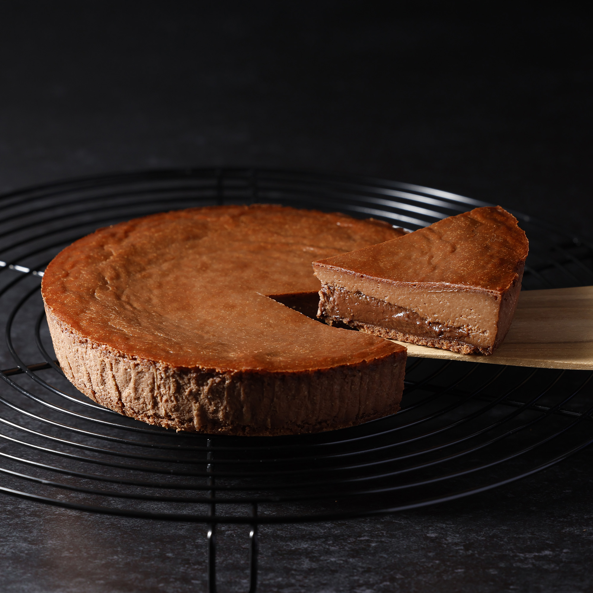 しっとり濃厚なショコラチーズケーキと自家製ショコラカスタードの二層仕立ての大人のチーズケーキ。
