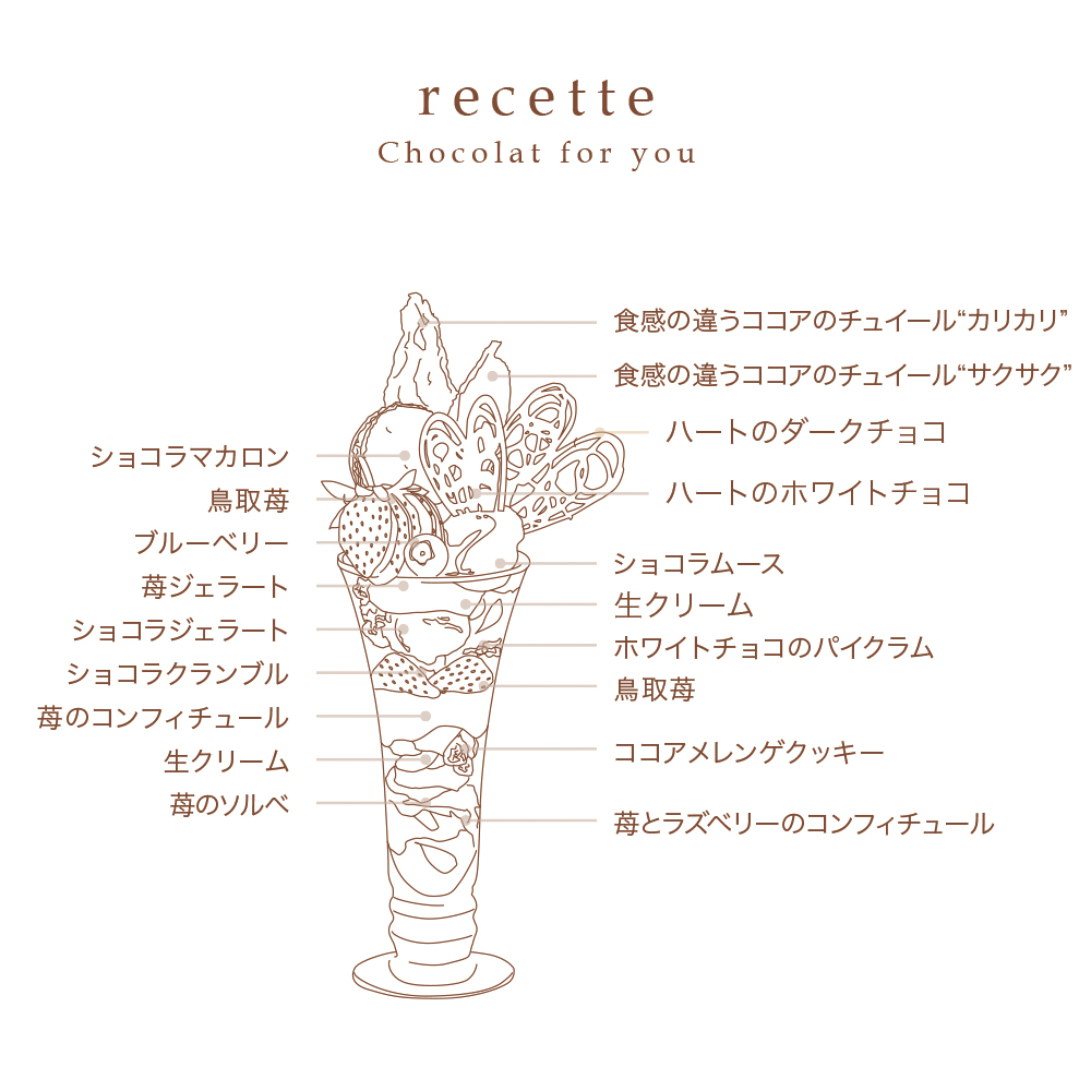 パティシエが「完璧」を目指し、あなたのためにショコラと苺で綴ったパフェを心ゆくまでお楽しみください。