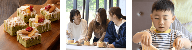 有機宇治抹茶パウダーを使用した濃厚ブラウニー作り。ホワイトチョコやドライフランボワーズでお好みにデコレーションしましょう。(お持ち帰り可)