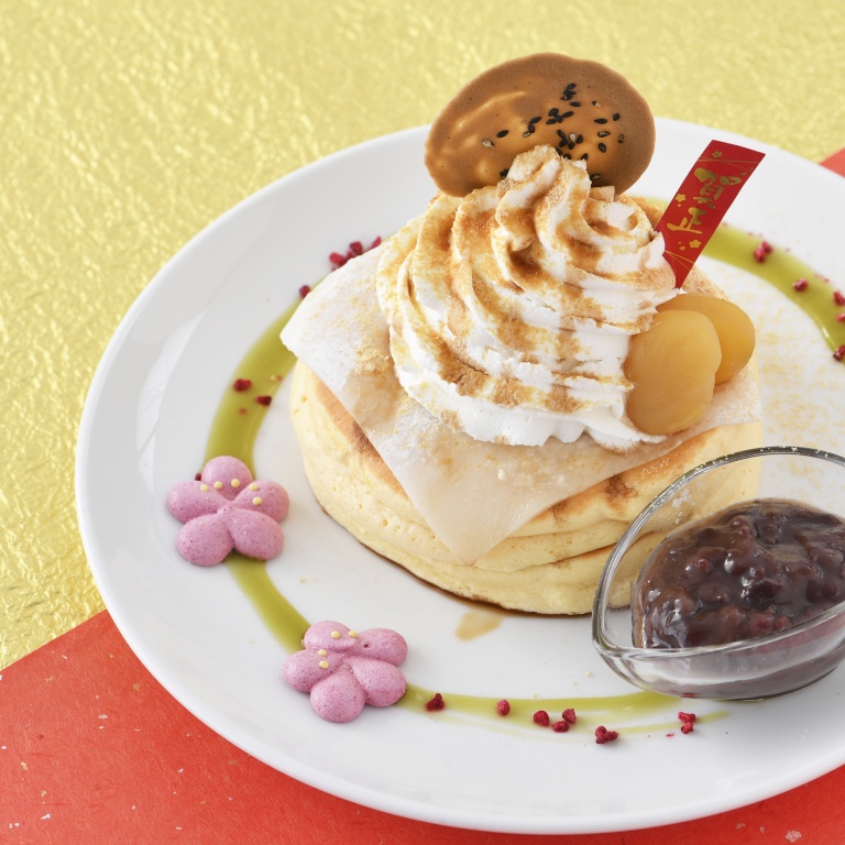 和の遊びごごろ溢れるパンケーキ。 もっちもちの求肥と、きな粉のジェラート、さらに栗の…