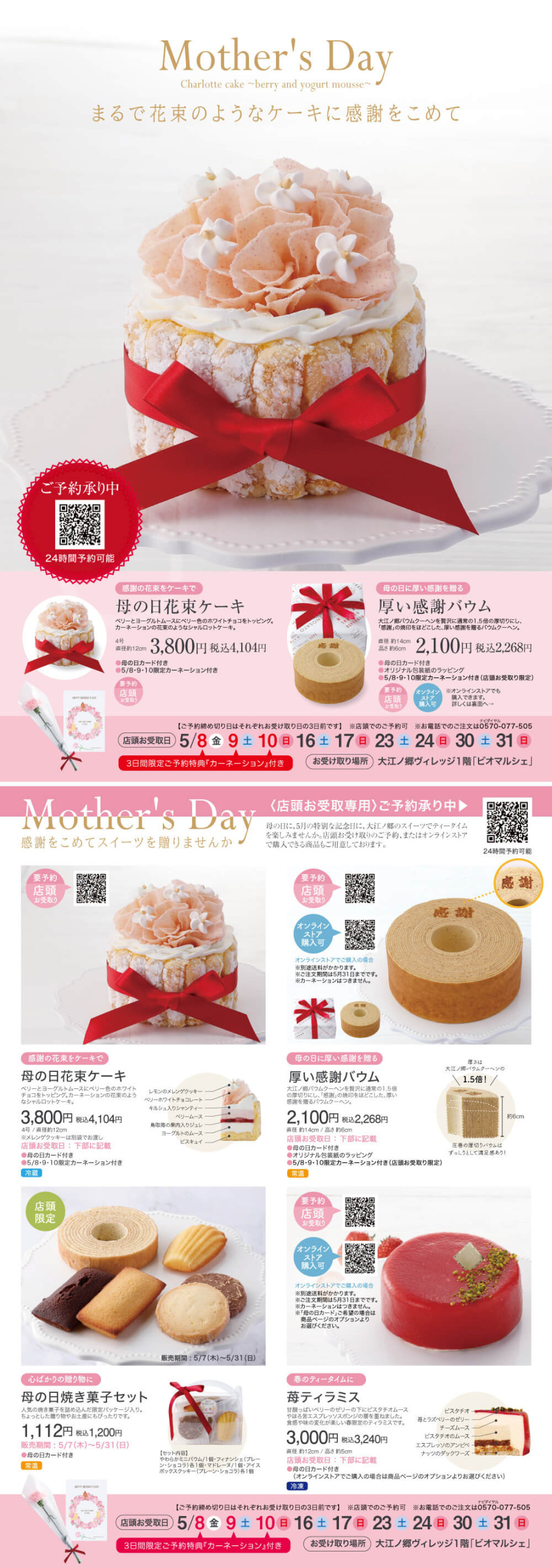 母の日に、5月の特別な記念日に、大江ノ郷のスイーツでティータイムを楽しみませんか。