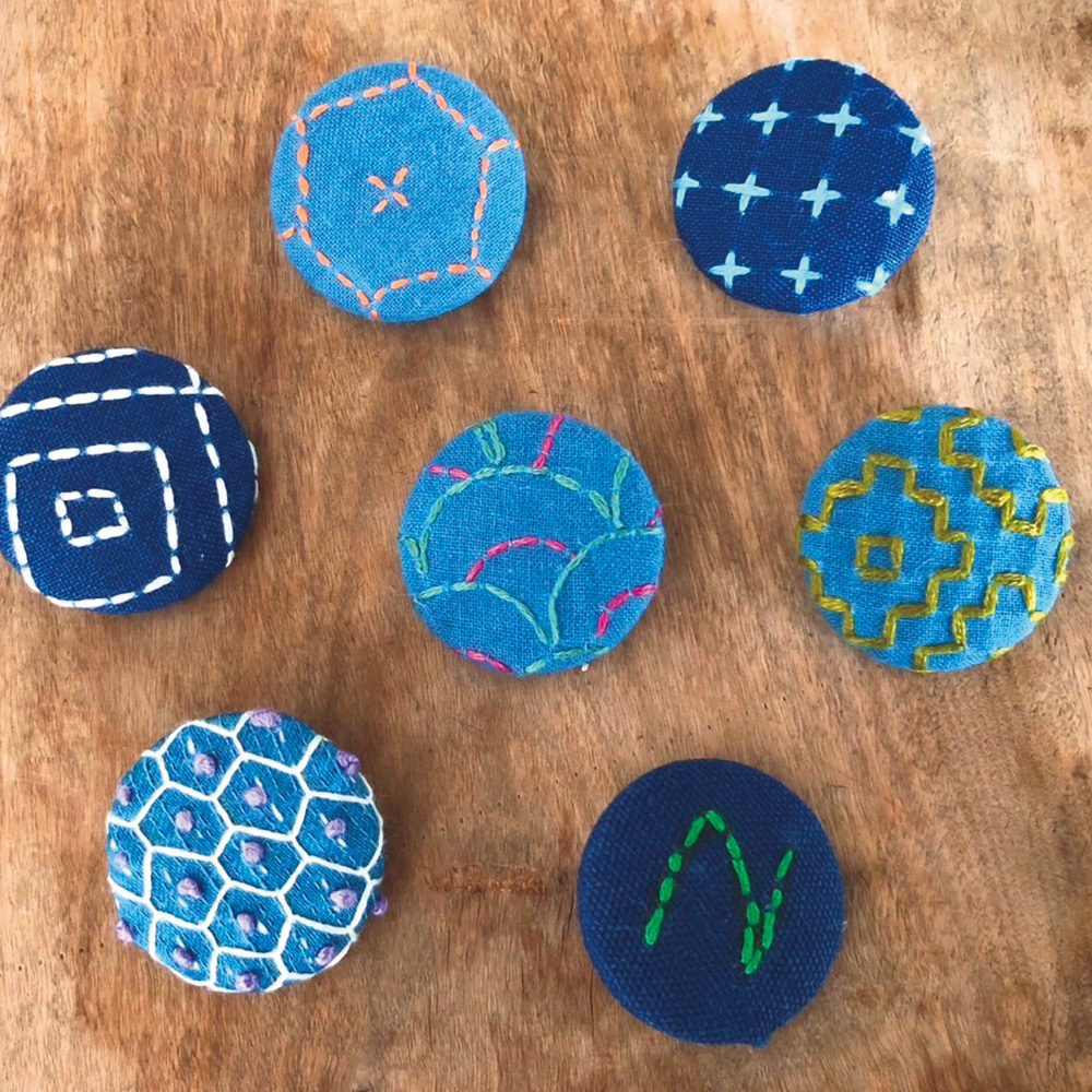 藍染の布に刺し子や刺繍を入れて自分だけのヘアゴムを作りませんか?