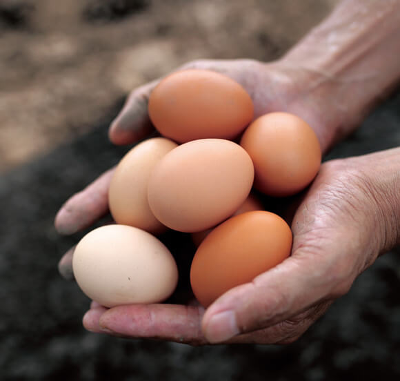 自然の風が吹き抜け、お日様の光が降り注ぐ平飼い牧場では、毎日鶏達が元気に走り回り、羽を広げて自由奔放に暮らしています。健康な鶏たちが産む卵は、昔ながらの味がする本物の卵です。