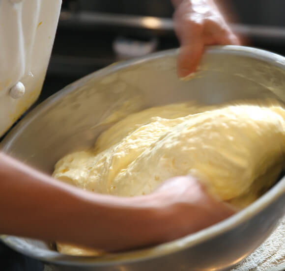 大江ノ郷パンケーキは、職人の手で生地作りから丁寧に行っています。