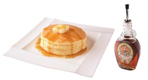 シャキッとした食感を残しつつほろ苦くキャラメリゼした鳥取林檎をふわっふわのパンケーキの上にたっぷりとトッピング。