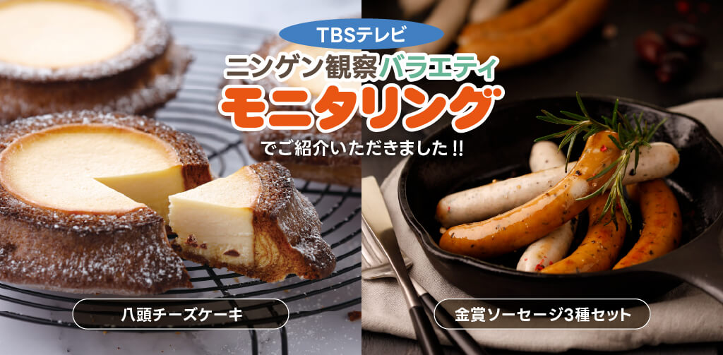 当牧場商品の「八頭チーズケーキ」と「金賞ソーセージ3種セット」をTBSテレビ「人間観察バラエティ モニタリング」でご紹介いただきました!