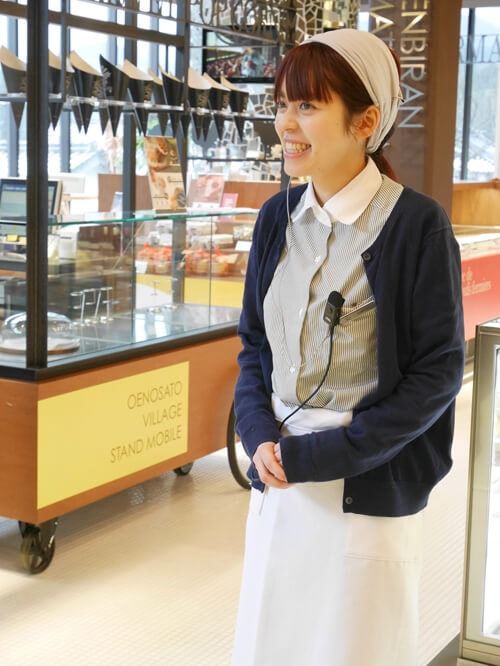 現在は、大江ノ郷ヴィレッジのマルシェで働いています。 ここでは天美卵やスイーツ等の自社加工品や、オーガニックの商品を販売しています。またお客様に喜んで頂くためのイベント企画などにも携わっています。お客様へギフトのご提案をしたり、県外のお客様に鳥取や、大江ノ郷の良さをお伝えするのも、私たちの大切な仕事です。