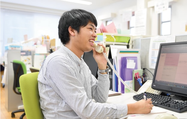 大江ノ郷自然牧場は、全国のお客様に通信販売で天美卵をお届けしています。その窓口となるのが通販事務の業務です。お電話でお客様の気持ちやご要望をお伺いし、最適な商品提案を行ったり、PCを使用しての注文入力、発送伝票の作成などを行っています。お客様に心から喜んでいただけるよう、受注からアフターフォローまでの一連の業務を行っています。その他にも経理業務や、店舗に関するお問い合わせ対応などの業務も行っています。全国のお客様と大江ノ郷自然牧場を繋ぐ架け橋になるようなお仕事です。