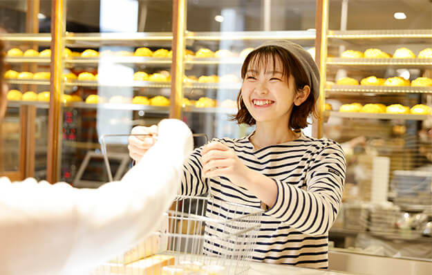 接客を通してお客様に最高のおもてなしを提供します。考え方の基本は”お客様に心から満足していただくためにはどうするか”。お客様の過ごす空間や時間全てをサービスととらえ、接客だけでなく、商品のレイアウト、店舗装飾、イベントやメニューの企画立案なども行います。お客様と「やすらぎ」「喜び」「感動」を共有し、お客様の心に残るひとときを過ごしていただくことを大切にしています。