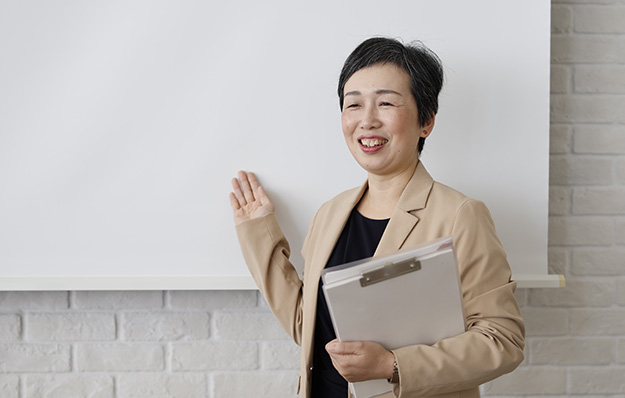 スタッフの皆様がイキイキと働けるよう職場づくりを行う「スタッフ支援業務」と、会社の未来を創る「経営企画業務」を行っています。管理業務では、勤務管理や給与計算事務、就業規則の改訂などを行っています。経営企画では、中期の事業計画の策定や、新事業の創出育成など会社が永続的に発展するために必要な新しい価値を作り出します。会社の未来を見据え、よりよい会社にするためにどうしたらよいか、常に考えることを大切にしています。