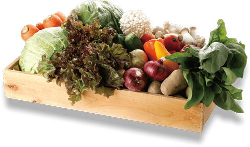 地元の協力農家さんから届く新鮮な野菜やきのこ、お米を積極的に使用。