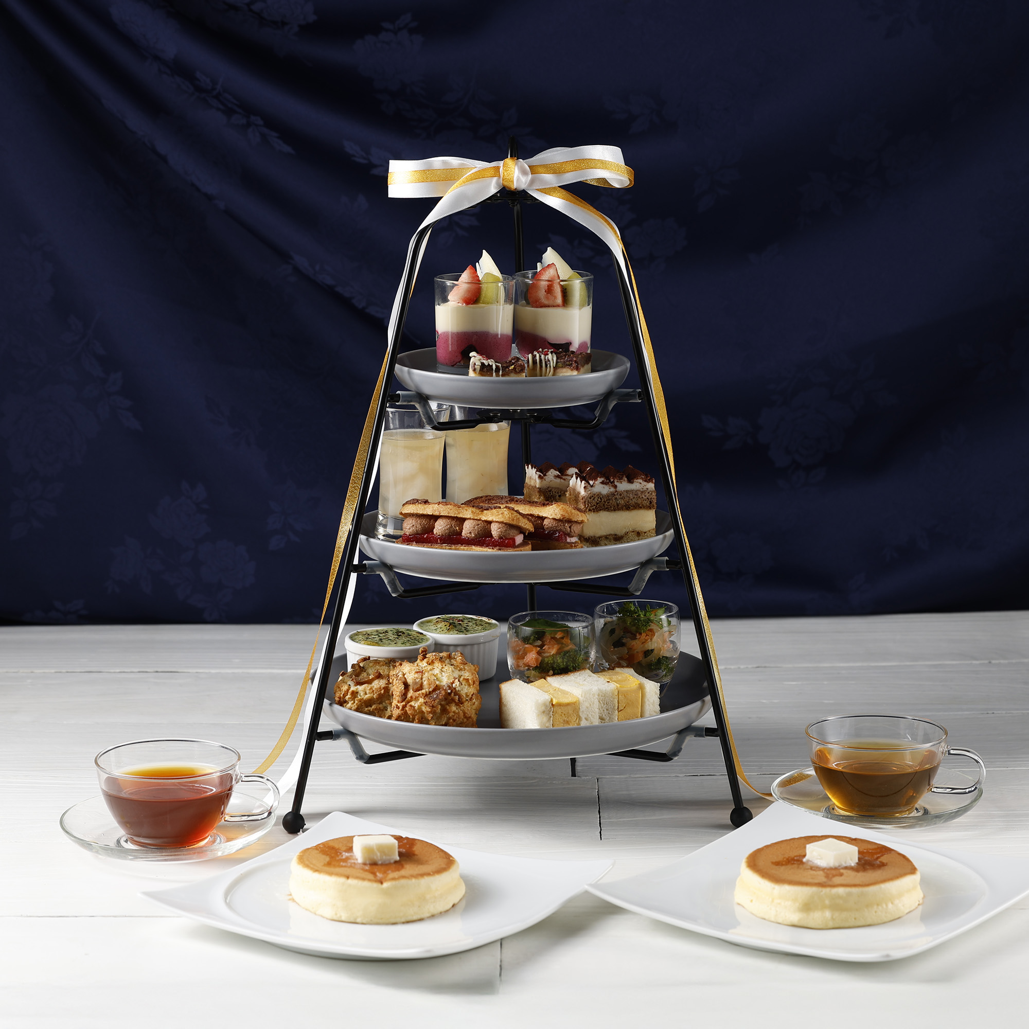 レストラン大江ノ郷テラスでは、季節のスイーツ&セイボリーで彩る「アフタヌーンティー」を開催。