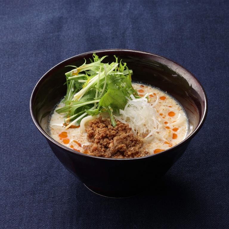 有機豆乳に自家製だしを合わせた風味豊かなかけだしに、旨みと食感にこだわった特製の肉味…