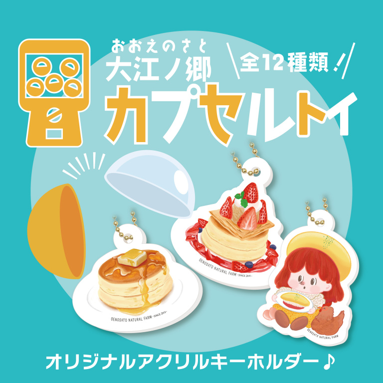 大江ノ郷ヴィレッジ10周年を記念して、大江ノ郷オリジナルのアクリルキーホルダー・カプ…